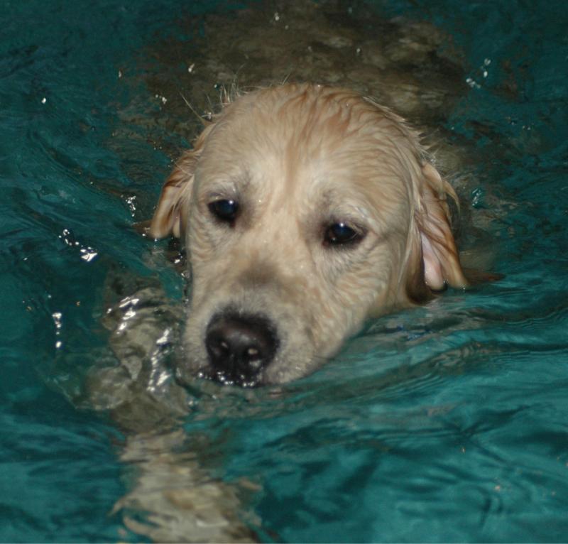 | Bracken is a 3 yr old Golden Retriever owned by Geraldine & Clive. Bracken ruptured his left Cruciate Ligament and has undergone TPLO surgery. He is recovering extremely well, and thoroughly en jo ys his swims. (Oct 2006) |